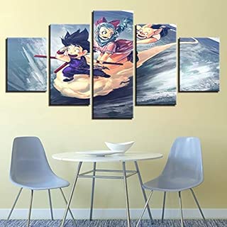 juntop Impresiones de Lienzo Dragon Ball Mujer de Goku Chichi Salto Pinturas en la Nube 5 Piezas Modular Wallpapers Poster Sala de Estar Casa Deco-No Frame Impresiones sobre Lienzo