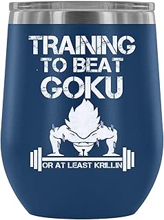 Stainless Steel Tumbler Cup with Lids for Wine, Training to Beat Goku Saitama Goku Wine Tumbler, Dragon Ball Vacuum Insulated Wine Tumbler (Wine Tumbler 12Oz - Blue)