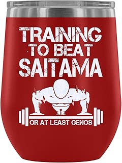 Steel Stemless Wine Glass Tumbler, Training to Beat Goku Saitama Goku Vacuum Insulated Wine Tumbler, Dragon Ball Wine Tumbler (Wine Tumbler 12Oz - Red)