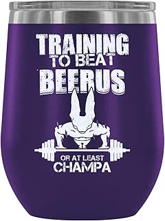 Steel Stemless Wine Glass Tumbler, Dragon Ball Wine Tumbler, Training To Beat Beerus Or At Least Champa Vacuum Insulated Wine Tumbler (Wine Tumbler 12Oz - Purple)