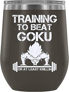 Steel Stemless Wine Glass Tumbler, Training To Beat Goku Vacuum Insulated Wine Tumbler, Dragon Ball Z Wine Tumbler (Wine Tumbler 12Oz - Red)