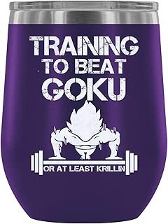 Steel Stemless Wine Glass Tumbler, Dragon Ball Z Wine Tumbler, Training To Beat Goku Vacuum Insulated Wine Tumbler (Wine Tumbler 12Oz - Purple)